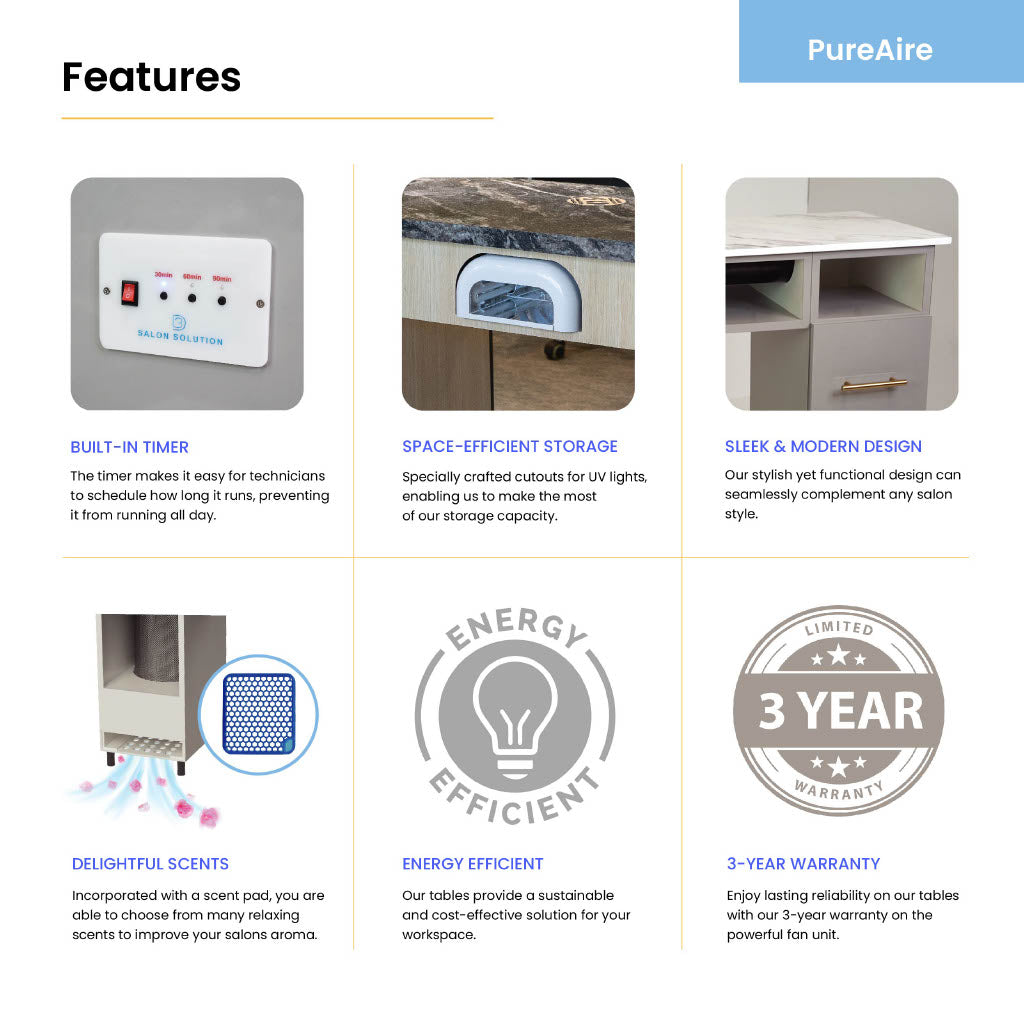 • These tables completely upgraded my salon. The air filtration works perfectly, the surface is easy to clean, and the sleek design always gets compliments from clients.