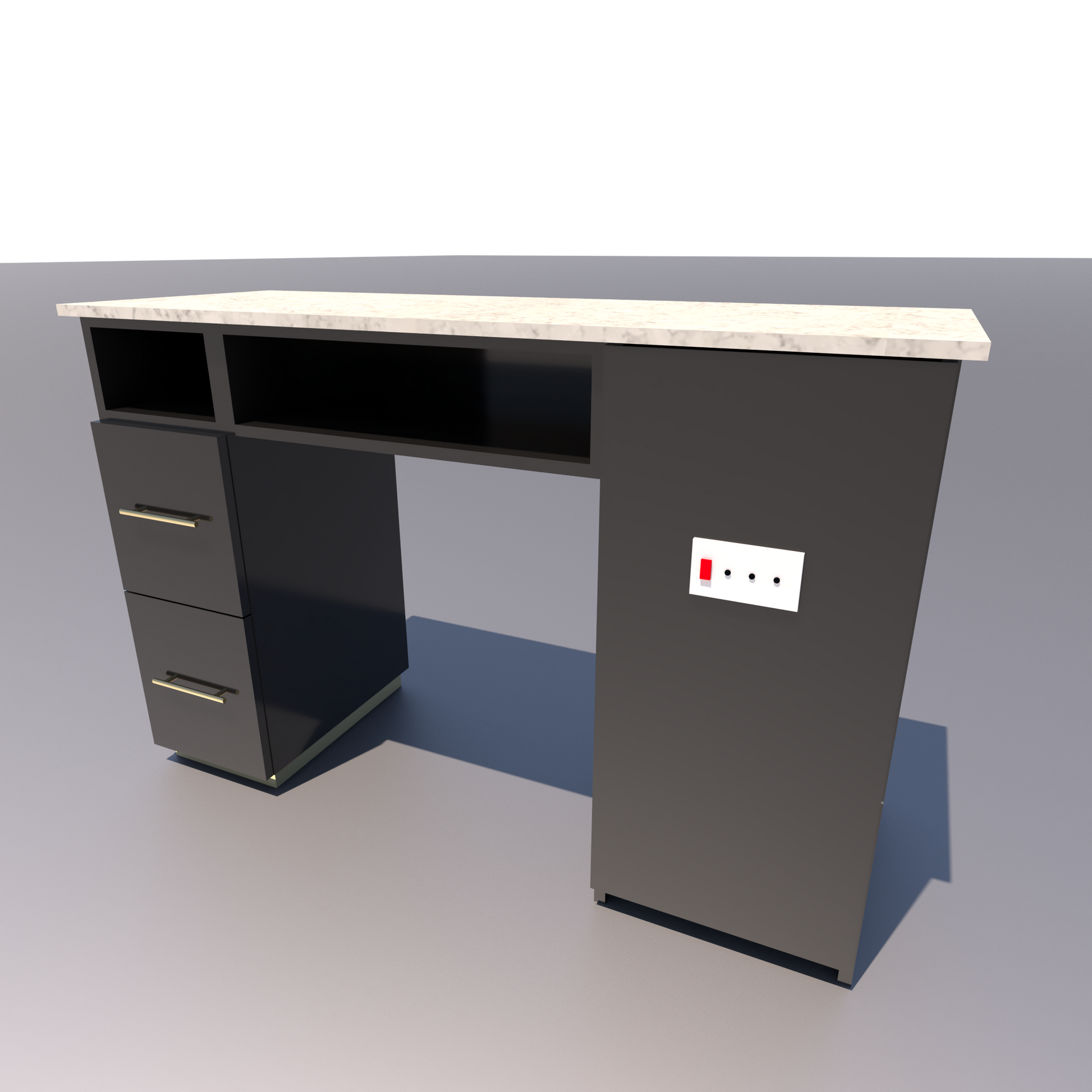 Durable countertop designed to resist staining and corrosion from salon chemicals, ensuring longevity and easy cleanup.