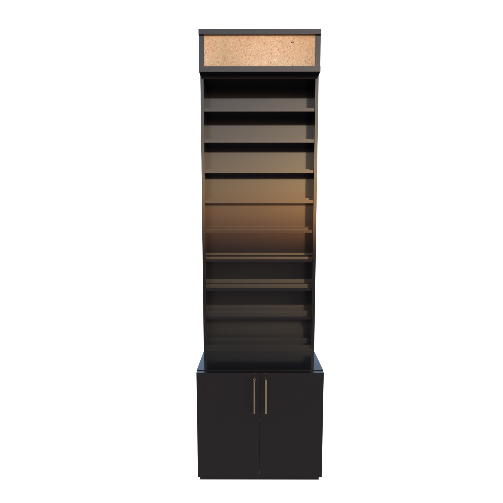 Unlike other large salon racks, this unit is built for smaller collections and personal studios where space is limited. We’ve thoughtfully added a spacious lower cabinet to house your bulkier items—gallons, tubs, and other essential supplies—keeping your workspace organized and clutter-free.